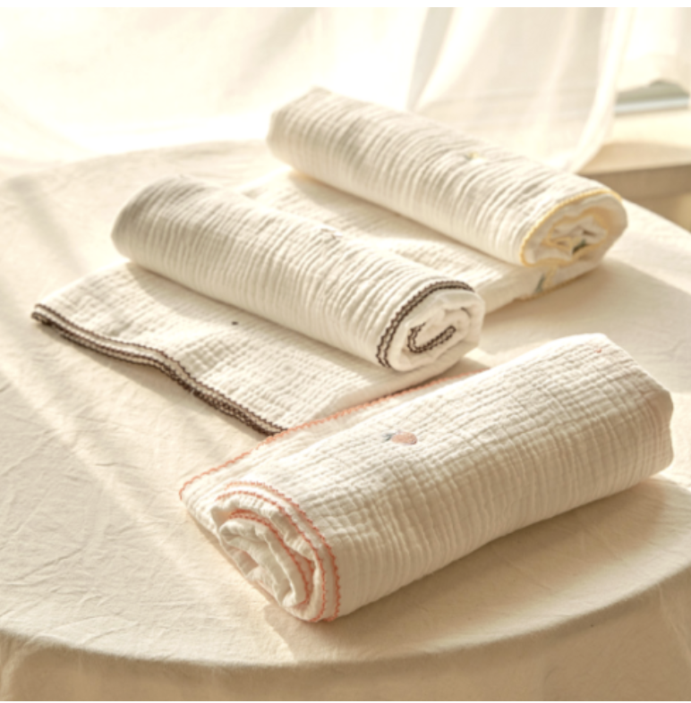 실내용이라면 부드럽고 가벼운 면이나 거즈 담요, 외출 시에는 도톰한 플리스나 양털 소재를 추천해요. 🍼✨ 아기의 움직임을 방해하지 않도록 크기와 무게도 고려해 주세요!